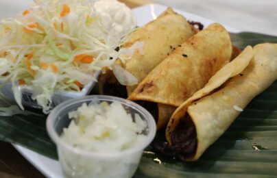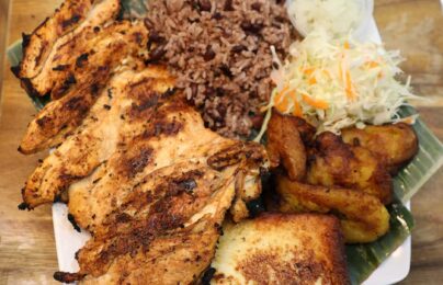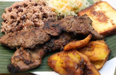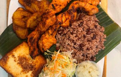 Gallo Pinto, Ensalada, Tajadas*, Queso Frito y Chile. Puede elegir entre: Tajadas…